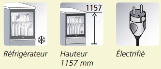 Avec réfrigérateur et 3 tiroirs avec aménagement intérieur pour les couverts et la vaisselle