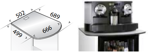 pour l’utilisation de machines à café volumineuses, également avec cache-câbles intégré sur le dessus, branchement de 2 prises de courant (230 V)