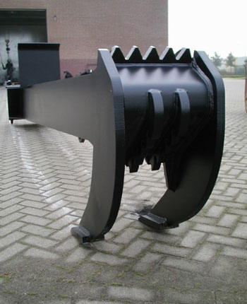 Pour travailler en toute sécurité, ce type de pince de démolition est équipé d'un pare-pierre permettant de dévier une éventelle chute de bloc.