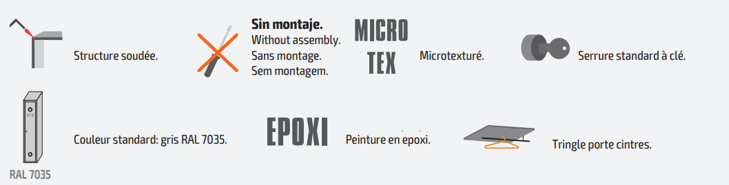 - Vestiaire soudé fabriqué en tôle d´acier laminé à froid,
