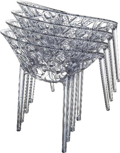 - Fauteuil empilable monobloc CRYSTAL en polycarbonate "MAKROLON" transparent