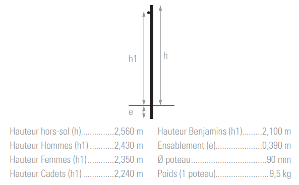 - Poteaux équipés d’un mètre sérigraphié pour le réglage de la hauteur
