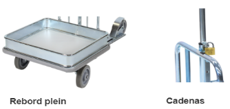 La charge maximale du chariot est de 150 kg, dont 50 Kg par plateau.