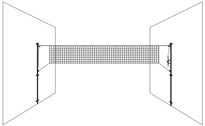 - 2 rails muraux en acier plastifié : 1 rail avec treuil et 1 rail pour acrocher le filet