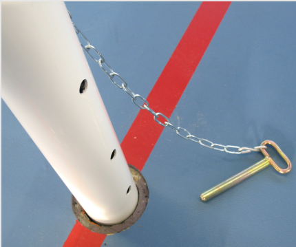 - Réglage des hauteurs de filet par coulissement du poteau dans le fourreau