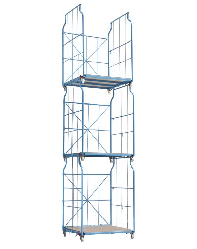 Cette corlette standard en couleur bleue est équipée de cadres latéraux en forme spéciale pour empiler.