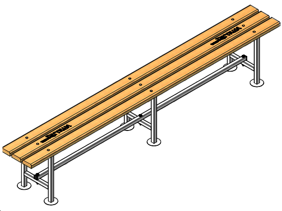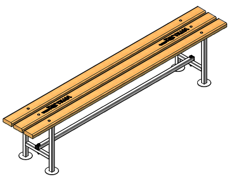 Ce banc de touche est doté d'une assises en 3 lames en sapin épaisseur 32mm verni polyuréthanne.