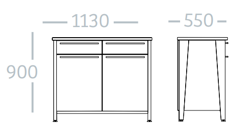 - Dimensions hors tout : H 900 x P 550 x L 1130 mm.