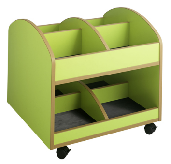 Ce rangement scolaire à roulettes est conçu pour la présentation et le rangement de livres de manière simple et visible.