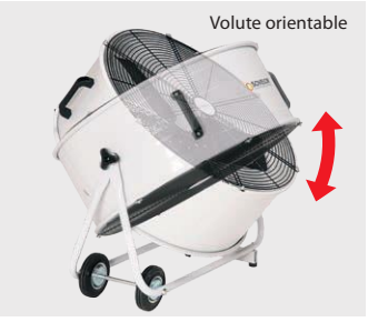 Dispose d’une volute pivotant sur 360° verticalement, permettant d’orienter de façon précise le flux d’air dans la direction désirée.