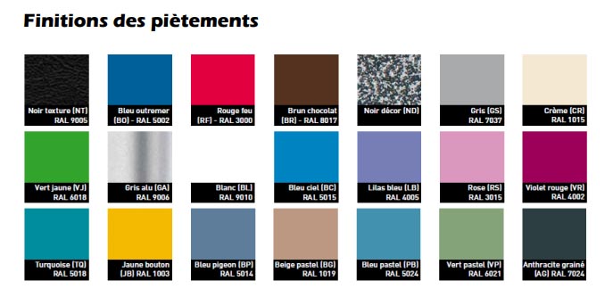 Choix de couleurs de piètement (à préciser lors de la commande)