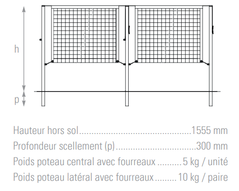 - Hauteur du filet : 1550 mm
