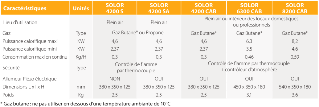 Les SOLOR sont des chauffages radiants mobiles fonctionnant (selon les modèles) au gaz propane ou au gaz butane.