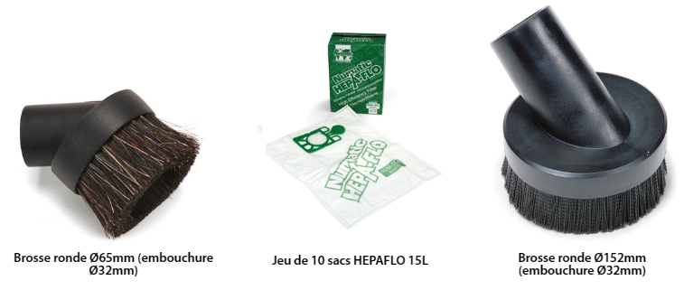 - Aspirateurs industriels destinés aux poussières de classe H (EN60335-2-69) : cancérigènes, chargées d'agents pathogènes (VLE<0.1mg/m3),