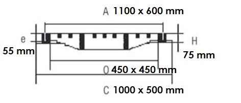 | Réf. TC :598231212 | Grille plate pour caniveau C250 | C 250 | 105 | En fonte ductile | 1100 x 600 mm | 75 | -
