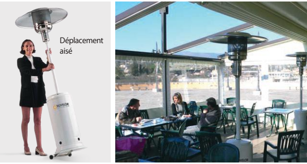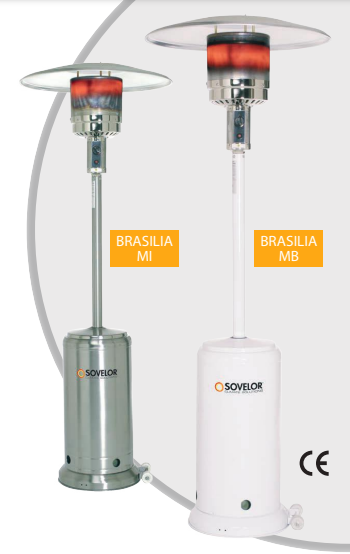 Les parasols chauffants BRASILIA sont des appareils radiants au gaz, mobiles avec roues et fonctionnant sans alimentation électrique.