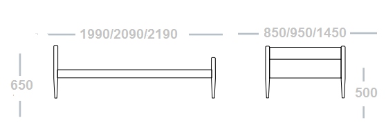 - Lit 90 x 210: 950 x 2190 mm