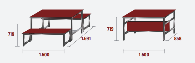 | Réf. TC :947343938 | Table et banc pour cantine inox stratifié | 1600 | 719 | 858-1691 | Acier inoxydable | Stratifié en 12 mm | -