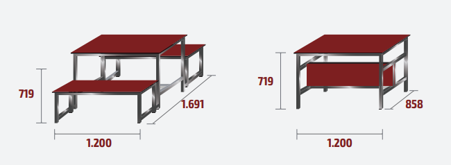 | Réf. TC :619854145 | Table et banc pour cantine inox stratifié | 1200 | 719 | 858-1691 | Acier inoxydable | Stratifié en 12 mm | -