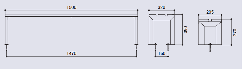- Structure : tube acier 30 x 50 mm peint sur zinc, RAL 5010.