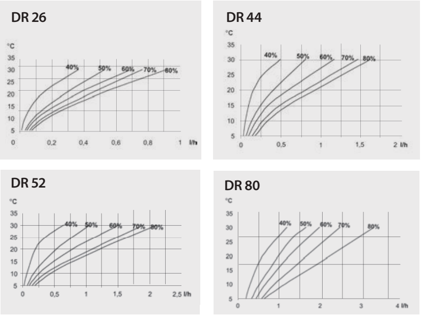 - Pouvant évacuer de 28 à 96 L d’eau par jour, les DR permettent de réduire considérablement les temps de séchage sur les