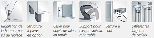 Ce vestiaire permet également de stocker des effets personnels tels qu'un téléphone portable et un portefeuille grâce au casier à verrou.