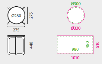 - Dimensions : Ø 280 x 440 mm