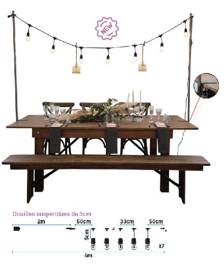 Nous vous proposons cette guirlande lumineuse style Guinguette pour apporter une ambiance chaleureuse et authentique lors de vos événements nocturnes.