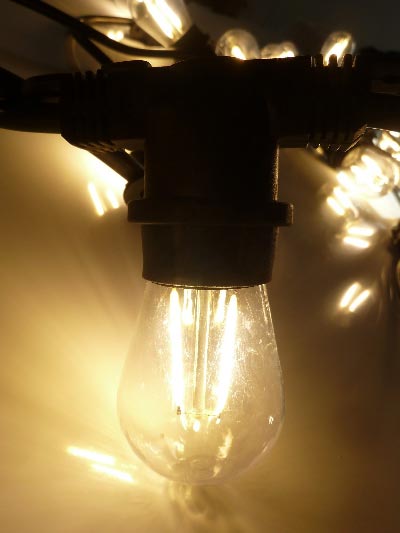 - Ampoules LED E27, "filaire". 2 W = 20 W rendus réels.