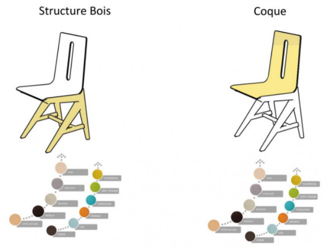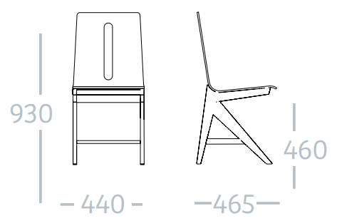 - L’assise et le dossier sont en contreplaqué moulé d'épaisseur 10 mm. Placet garni