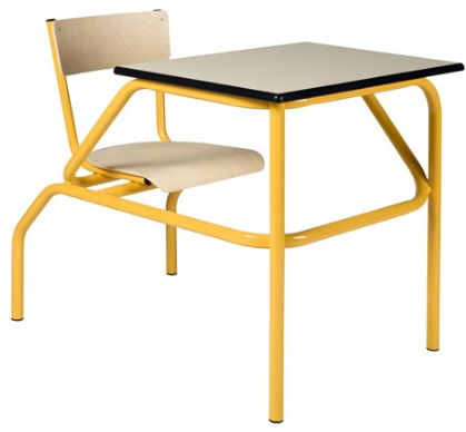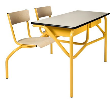 Cette table scolaire avec sièges attenants est destinée à équiper les classes d'écoles, collèges ou lycées.
