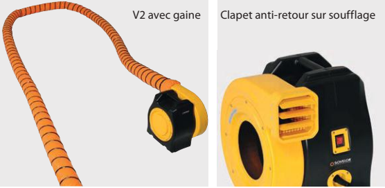 Il est recommandé pour les utilisations nécessitant le raccordement à une grande longueur de gaine de soufflage souple ou rigide, ou pour le gonflage de structures souples mobiles ou temporaires.