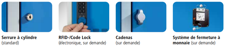 Avec système de fermeture Key Lock à fermeture différente ou système à cadenas (autres systèmes de fermeture sur demande)